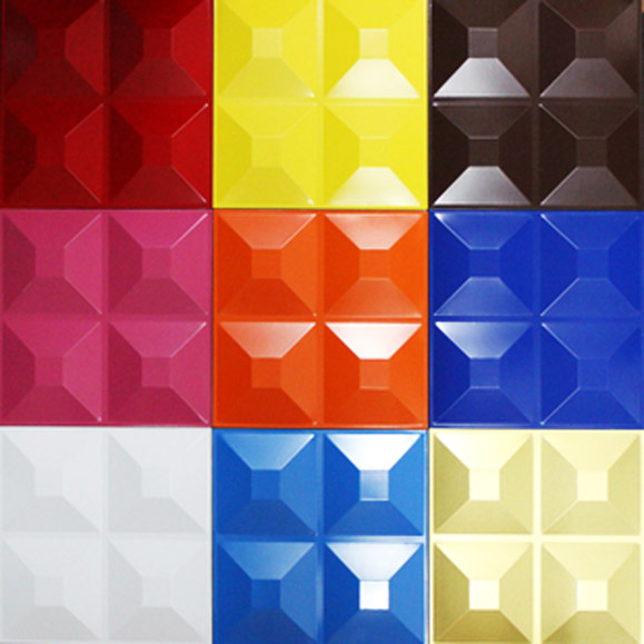 三維扣板是一種新型的戶外招牌三維裝飾板。造型時尚簡約,具有真實的立體效果,單件可以自由組合,隨意上色,展現(xiàn)靈活的裝飾藝術(shù)效果。立體扣板防火阻燃,可水洗,可以自然上色,也可以自己動手上色,易于切割,安裝方便。不同的單塊組合呈現(xiàn)三維效果。